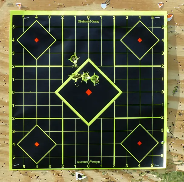 uppermost hole is the fouling shot. This 100 group, shot in the wind,
